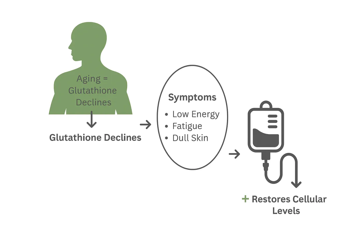 With IV therapy, Glutathione is delivered directly into your bloodstream for maximum absorption, so your body can use it instantly to:
